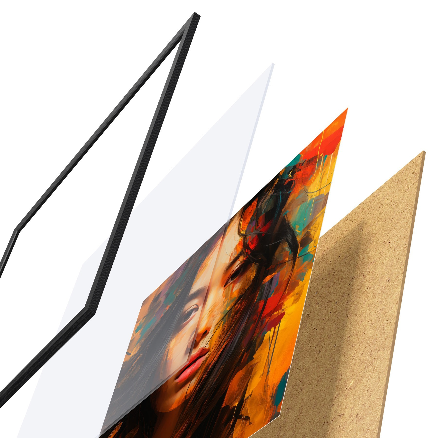 Le poster se compose d'un cadre, d'un plexiglas, d'une image imprimée et d'un support en aggloméré. Le poster peut être immédiatement accroché au mur grâce aux fixations au dos.
