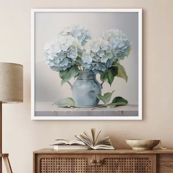 Affiche Hortensias frais dans un vase bleu sur fond clair f45043