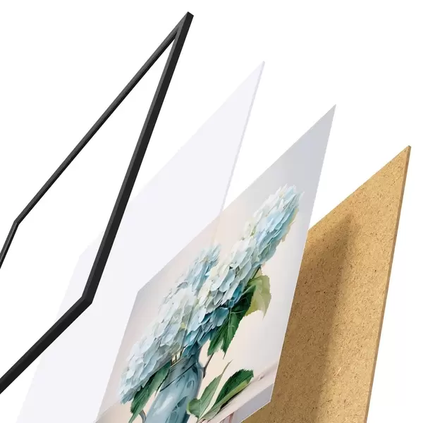 Le poster se compose d'un cadre, d'un plexiglas, d'une image imprimée et d'un support en aggloméré. Le poster peut être immédiatement accroché au mur grâce aux fixations au dos.