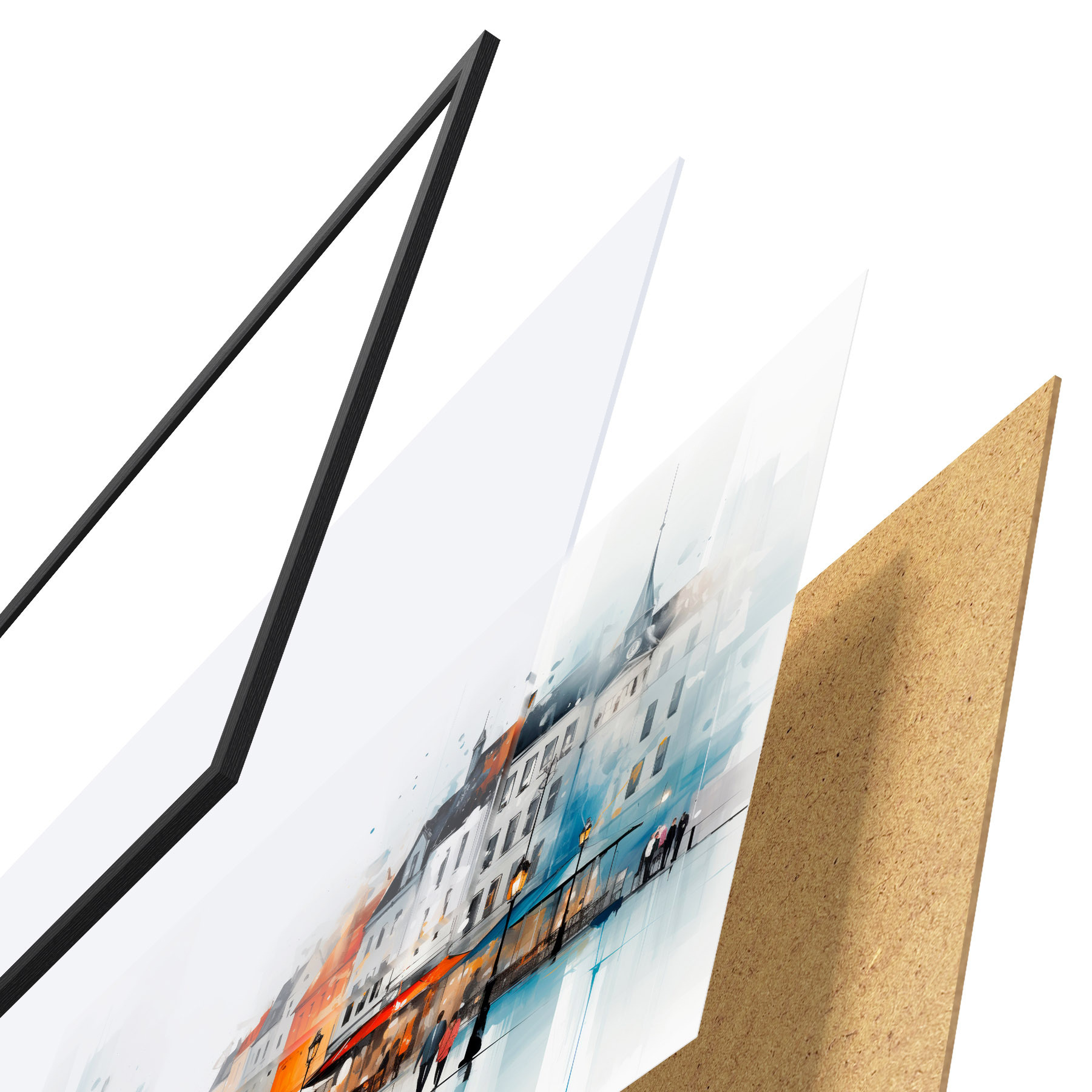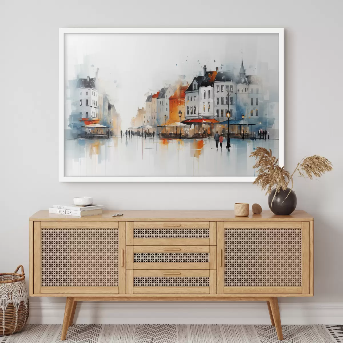 Affiche Scène de rue avec des bâtiments et des personnes dans un style artistique Non f45050