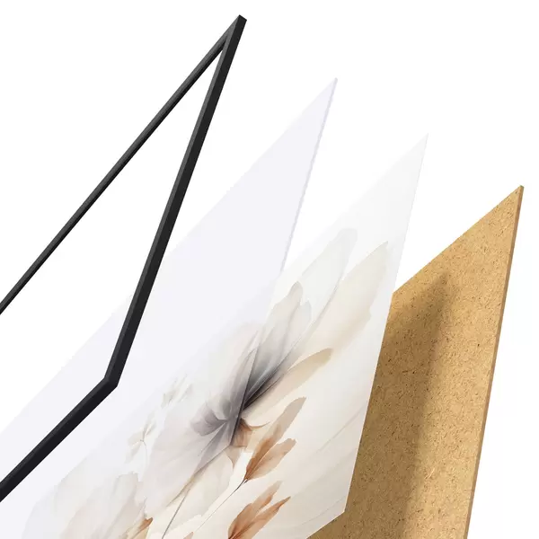Le poster se compose d'un cadre, d'un plexiglas, d'une image imprimée et d'un support en aggloméré. Le poster peut être immédiatement accroché au mur grâce aux fixations au dos.