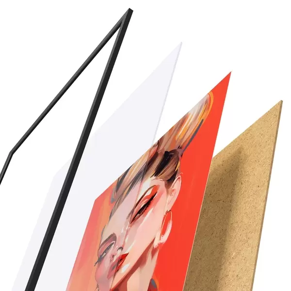 Le poster se compose d'un cadre, d'un plexiglas, d'une image imprimée et d'un support en aggloméré. Le poster peut être immédiatement accroché au mur grâce aux fixations au dos.