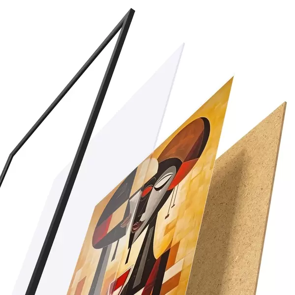 Le poster se compose d'un cadre, d'un plexiglas, d'une image imprimée et d'un support en aggloméré. Le poster peut être immédiatement accroché au mur grâce aux fixations au dos.