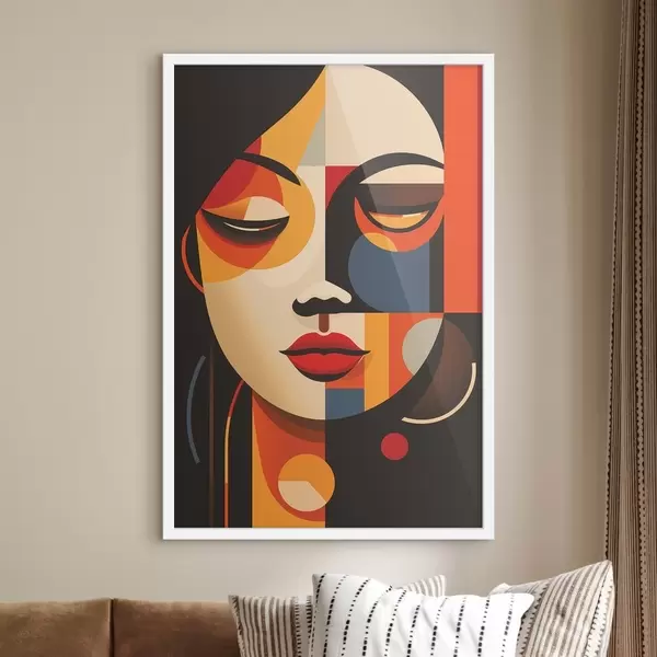 Affiche Visage féminin géométrique dans des couleurs chaudes f45087