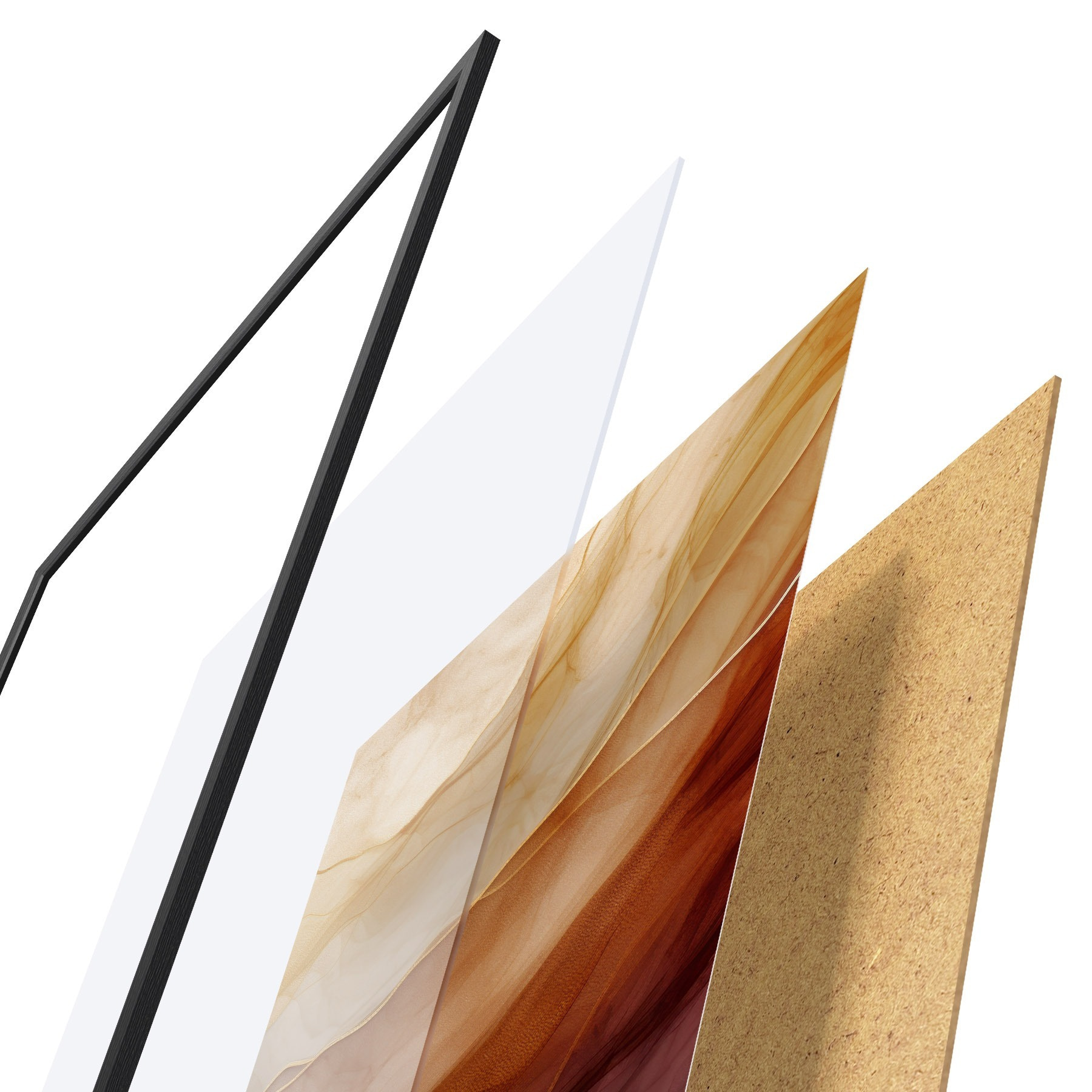 Le poster se compose d'un cadre, d'un plexiglas, d'une image imprimée et d'un support en aggloméré. Le poster peut être immédiatement accroché au mur grâce aux fixations au dos.