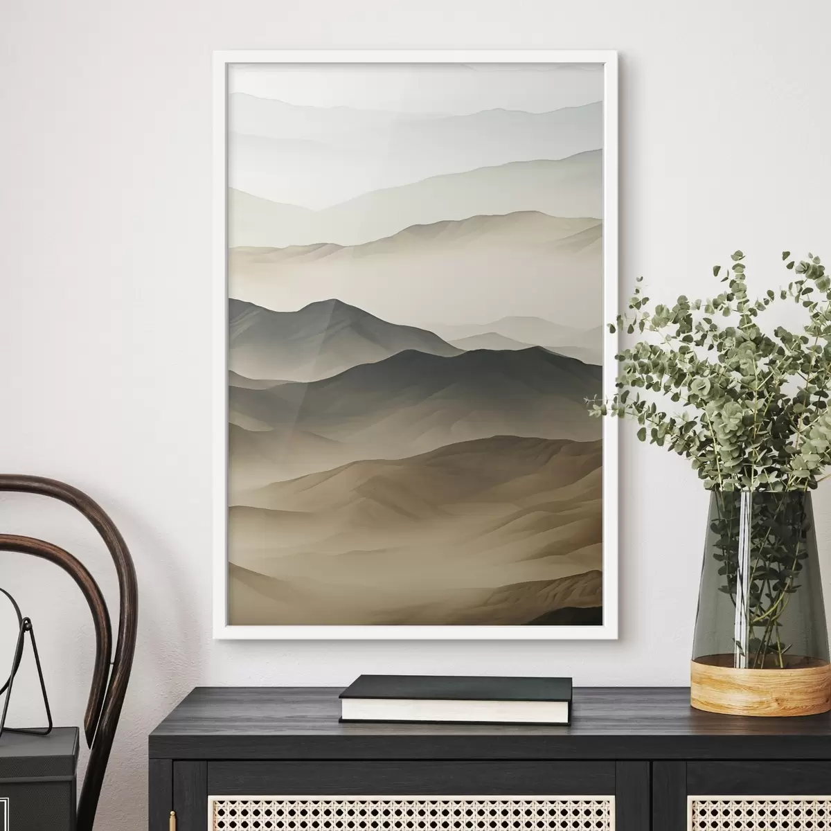 Affiche collines désertiques, formes lisses, estompé, texture organique, calme, minimal, terrain Non f45097