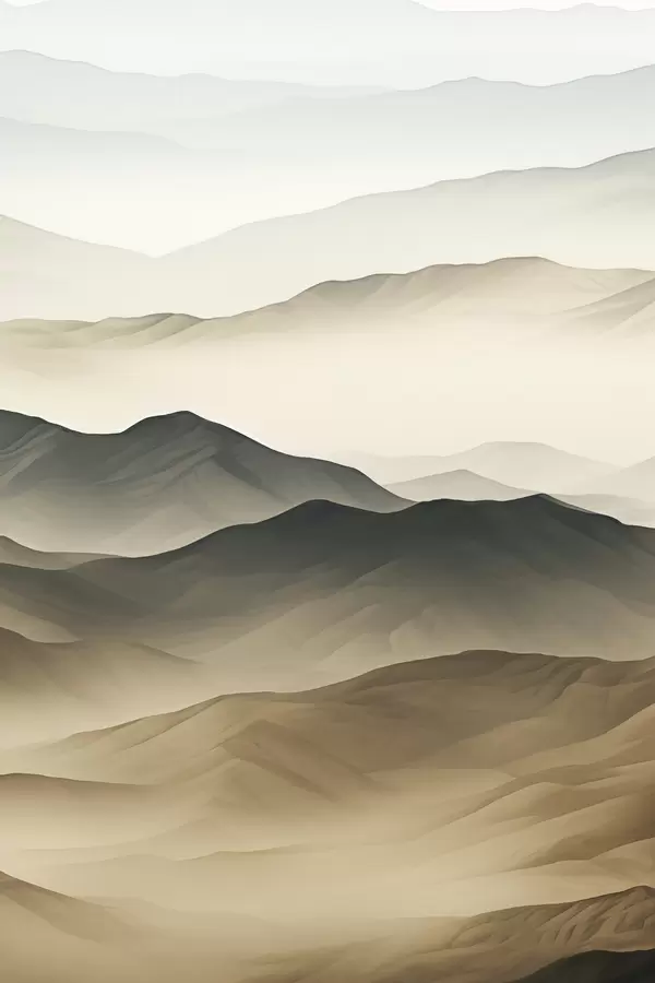 Affiche collines désertiques, formes lisses, estompé, texture organique, calme, minimal, terrain f45097