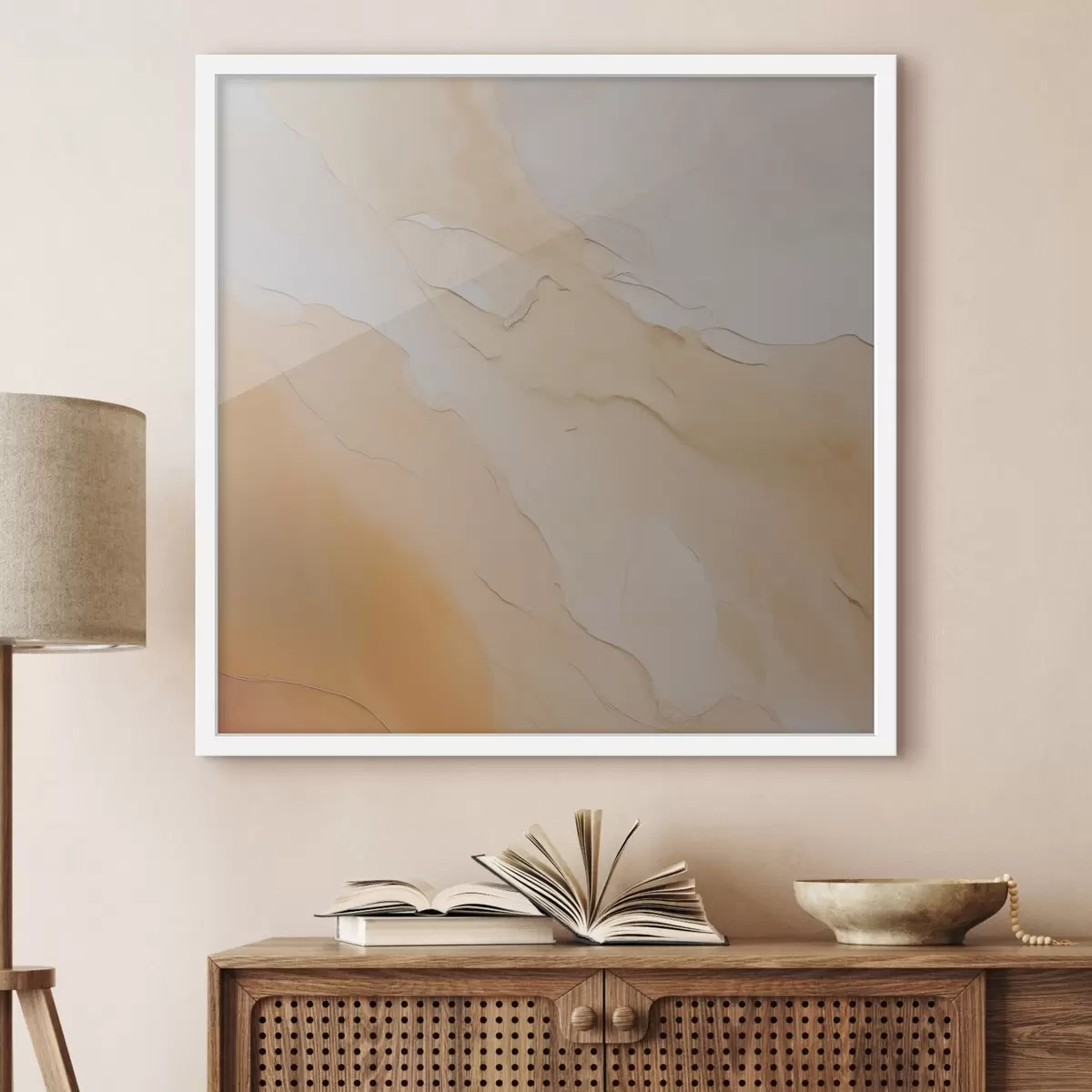 Affiche abstrait, fluide, beige, orange, texture de marbre, mélange doux, formes organiques, lisse f45105