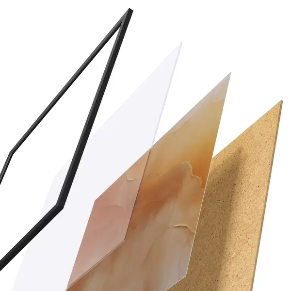 Le poster se compose d'un cadre, d'un plexiglas, d'une image imprimée et d'un support en aggloméré. Le poster peut être immédiatement accroché au mur grâce aux fixations au dos.