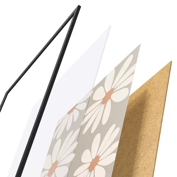 Le poster se compose d'un cadre, d'un plexiglas, d'une image imprimée et d'un support en aggloméré. Le poster peut être immédiatement accroché au mur grâce aux fixations au dos.