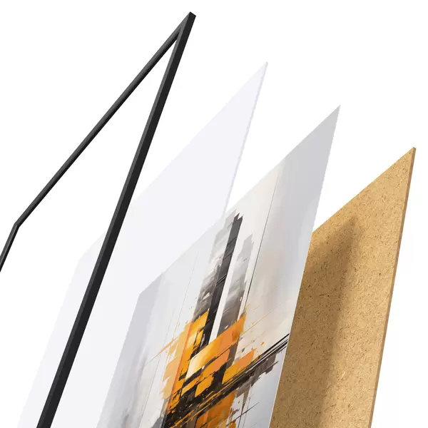 Le poster se compose d'un cadre, d'un plexiglas, d'une image imprimée et d'un support en aggloméré. Le poster peut être immédiatement accroché au mur grâce aux fixations au dos.