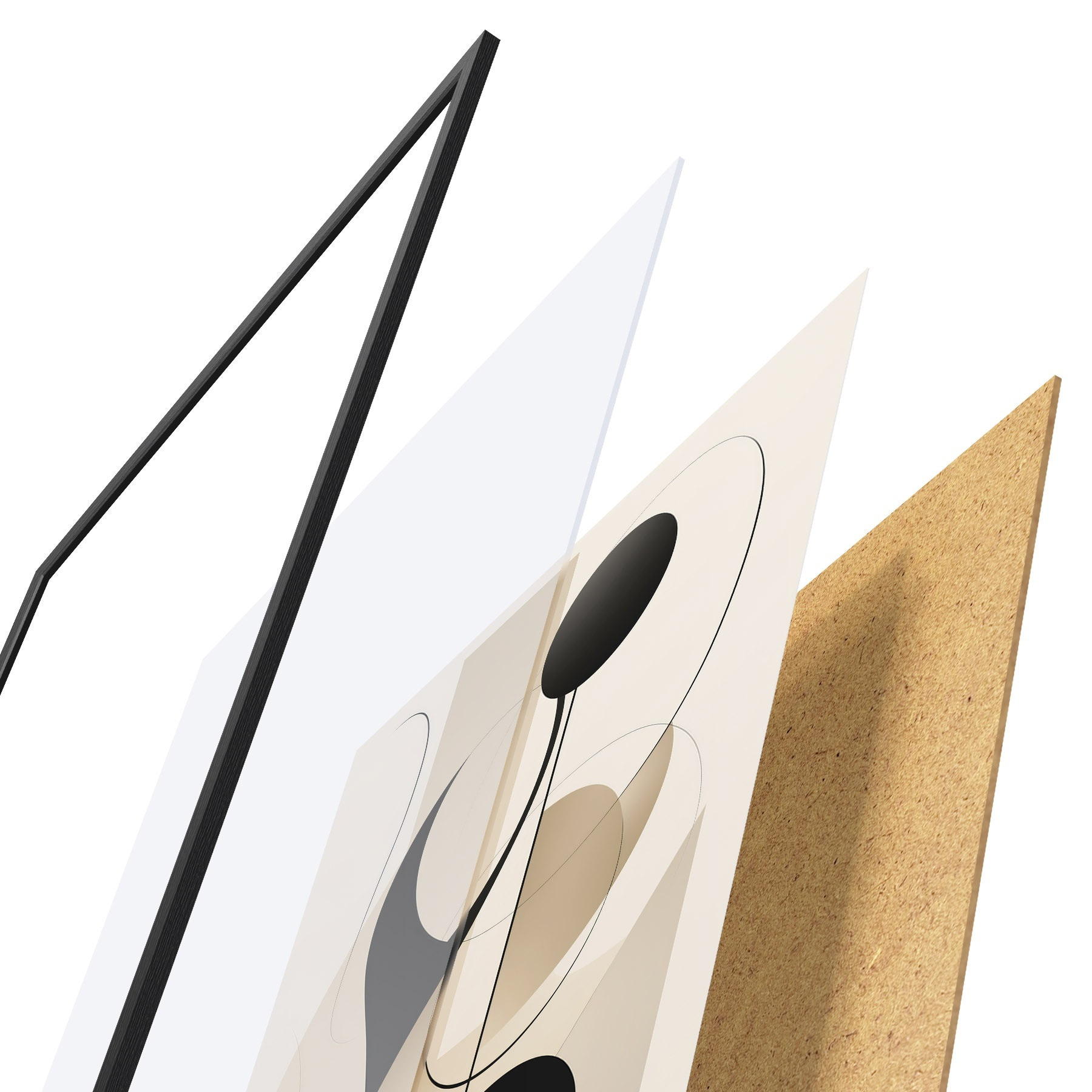 Le poster se compose d'un cadre, d'un plexiglas, d'une image imprimée et d'un support en aggloméré. Le poster peut être immédiatement accroché au mur grâce aux fixations au dos.