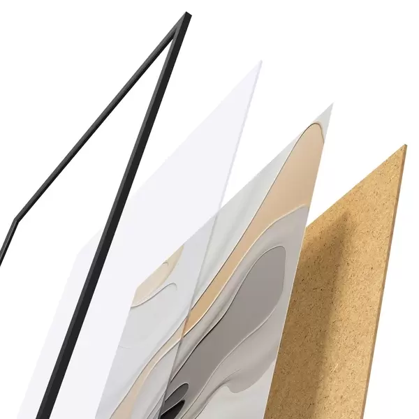 Le poster se compose d'un cadre, d'un plexiglas, d'une image imprimée et d'un support en aggloméré. Le poster peut être immédiatement accroché au mur grâce aux fixations au dos.