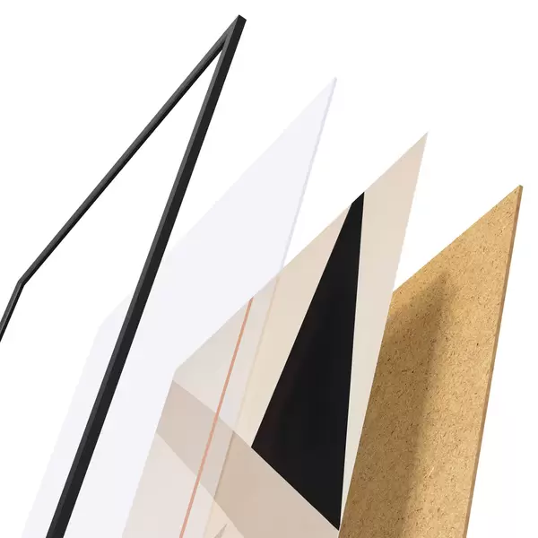 Le poster se compose d'un cadre, d'un plexiglas, d'une image imprimée et d'un support en aggloméré. Le poster peut être immédiatement accroché au mur grâce aux fixations au dos.