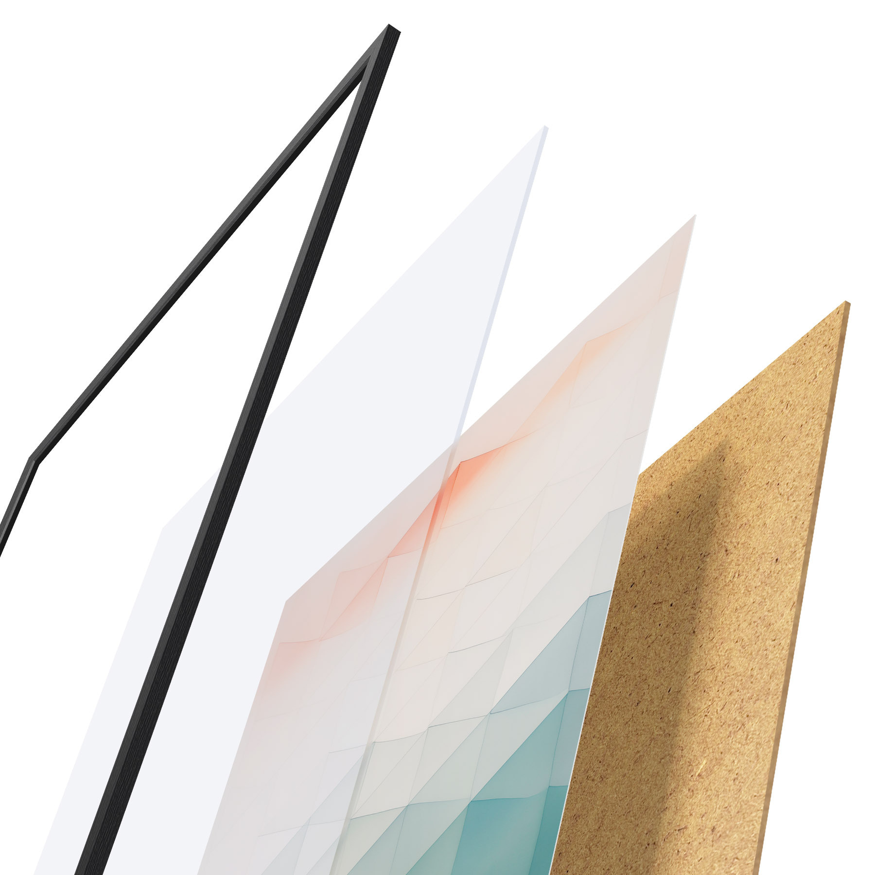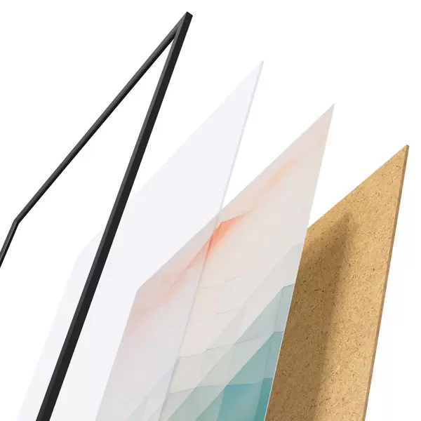 Le poster se compose d'un cadre, d'un plexiglas, d'une image imprimée et d'un support en aggloméré. Le poster peut être immédiatement accroché au mur grâce aux fixations au dos.