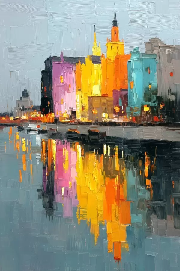 Affiche Lumières de la ville : paysage vibrant dans un style empâté f45242