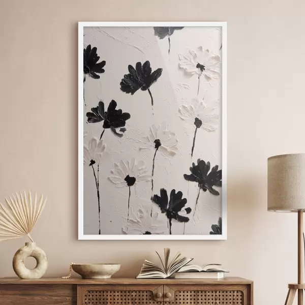 Affiche Fleurs volumétriques : composition d'empâtements dans des tons monochromes f45247