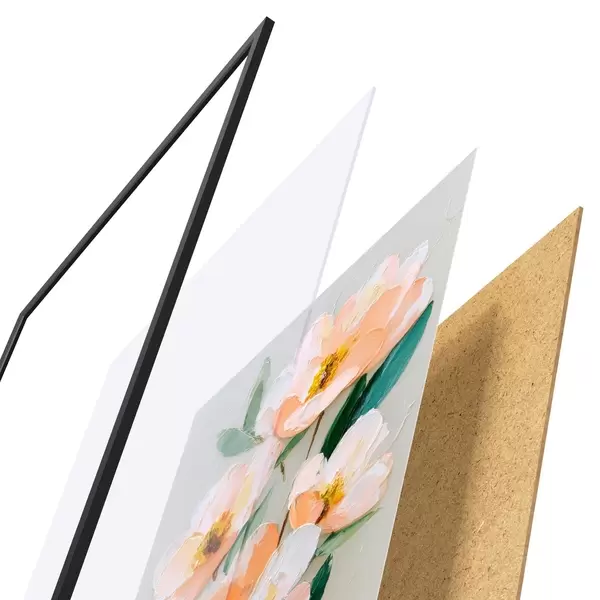 Le poster se compose d'un cadre, d'un plexiglas, d'une image imprimée et d'un support en aggloméré. Le poster peut être immédiatement accroché au mur grâce aux fixations au dos.