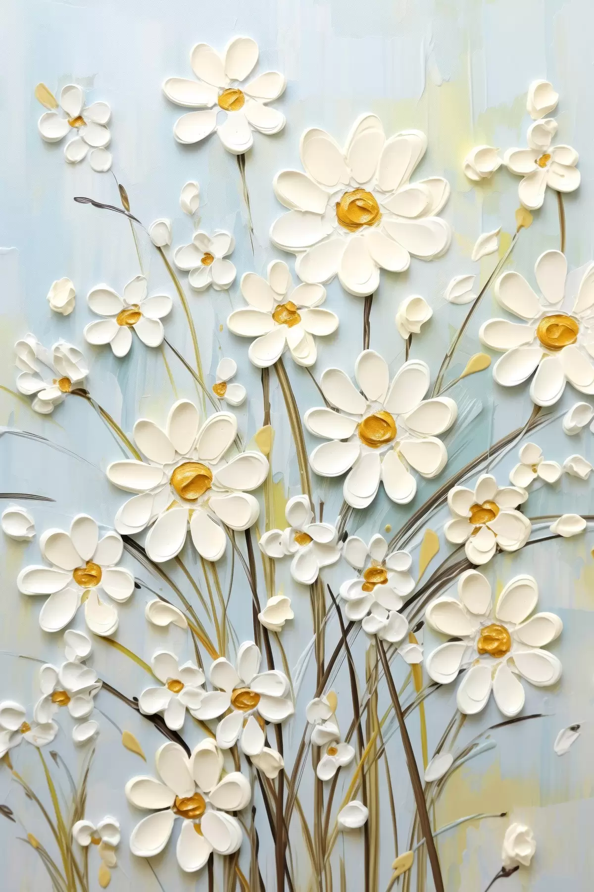 Affiche Marguerites texturées : l'art de l'empâtement avec des coups de pinceau expressifs Non f45266