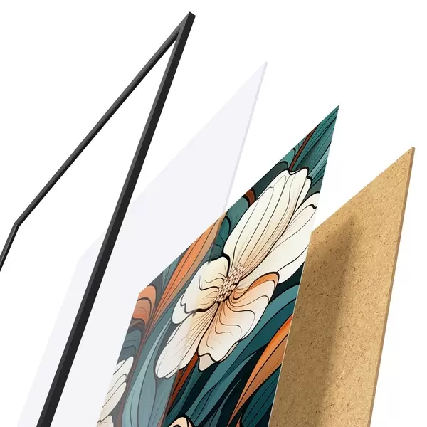 Le poster se compose d'un cadre, d'un plexiglas, d'une image imprimée et d'un support en aggloméré. Le poster peut être immédiatement accroché au mur grâce aux fixations au dos.