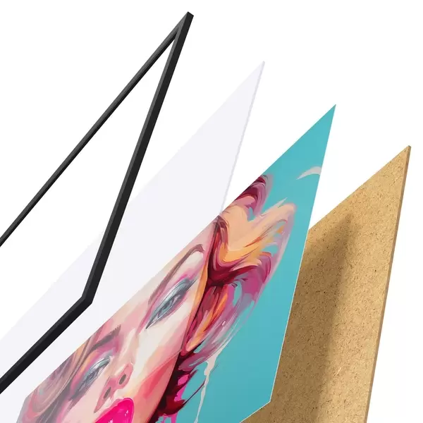 Le poster se compose d'un cadre, d'un plexiglas, d'une image imprimée et d'un support en aggloméré. Le poster peut être immédiatement accroché au mur grâce aux fixations au dos.