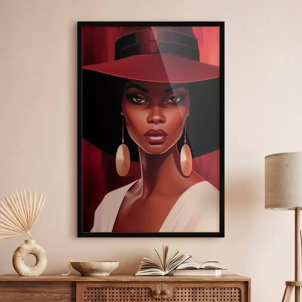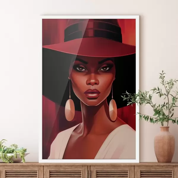 Affiche Femme avec un chapeau et des boucles d'oreilles rondes Non f45325