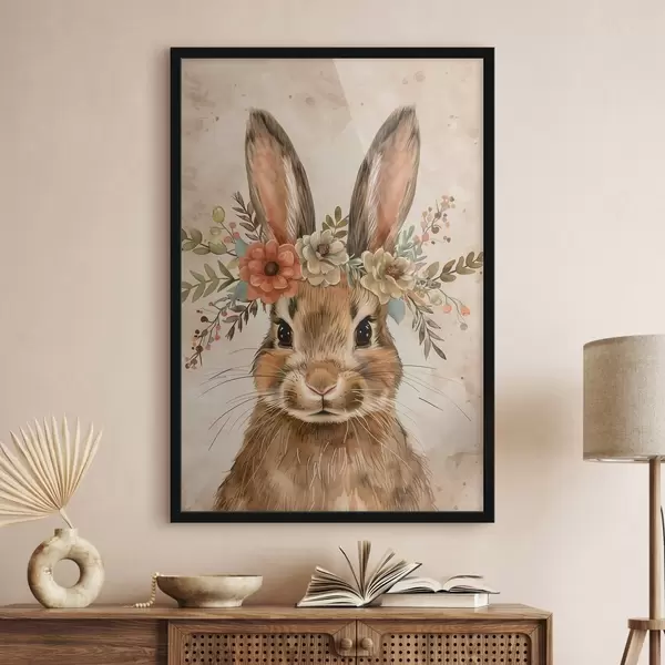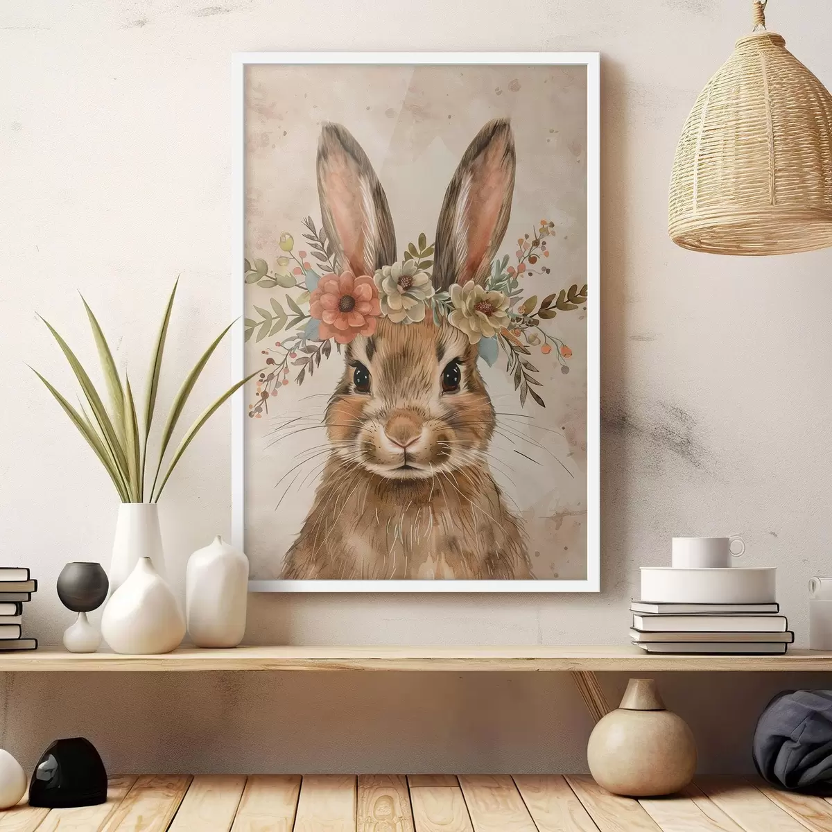 Affiche Lièvre mignon avec des fleurs en style aquarelle Non f45332