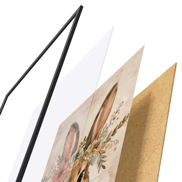 Le poster se compose d'un cadre, d'un plexiglas, d'une image imprimée et d'un support en aggloméré. Le poster peut être immédiatement accroché au mur grâce aux fixations au dos.