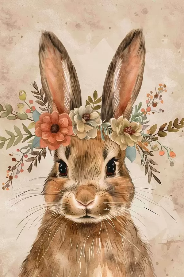 Affiche Lièvre mignon avec des fleurs en style aquarelle Non f45332