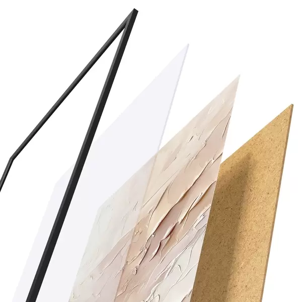 Le poster se compose d'un cadre, d'un plexiglas, d'une image imprimée et d'un support en aggloméré. Le poster peut être immédiatement accroché au mur grâce aux fixations au dos.