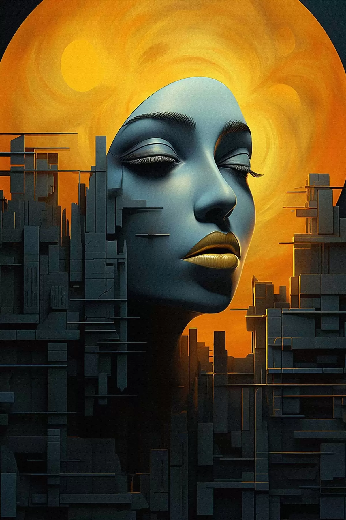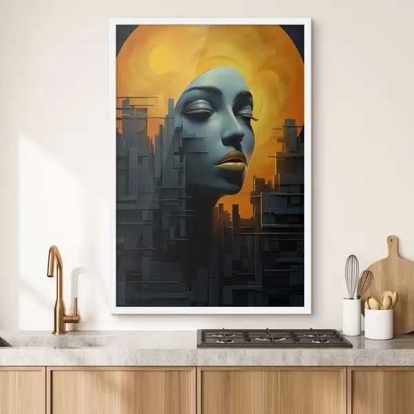 Affiche Personnes, visage de fille, ville sur fond abstrait Non f45342