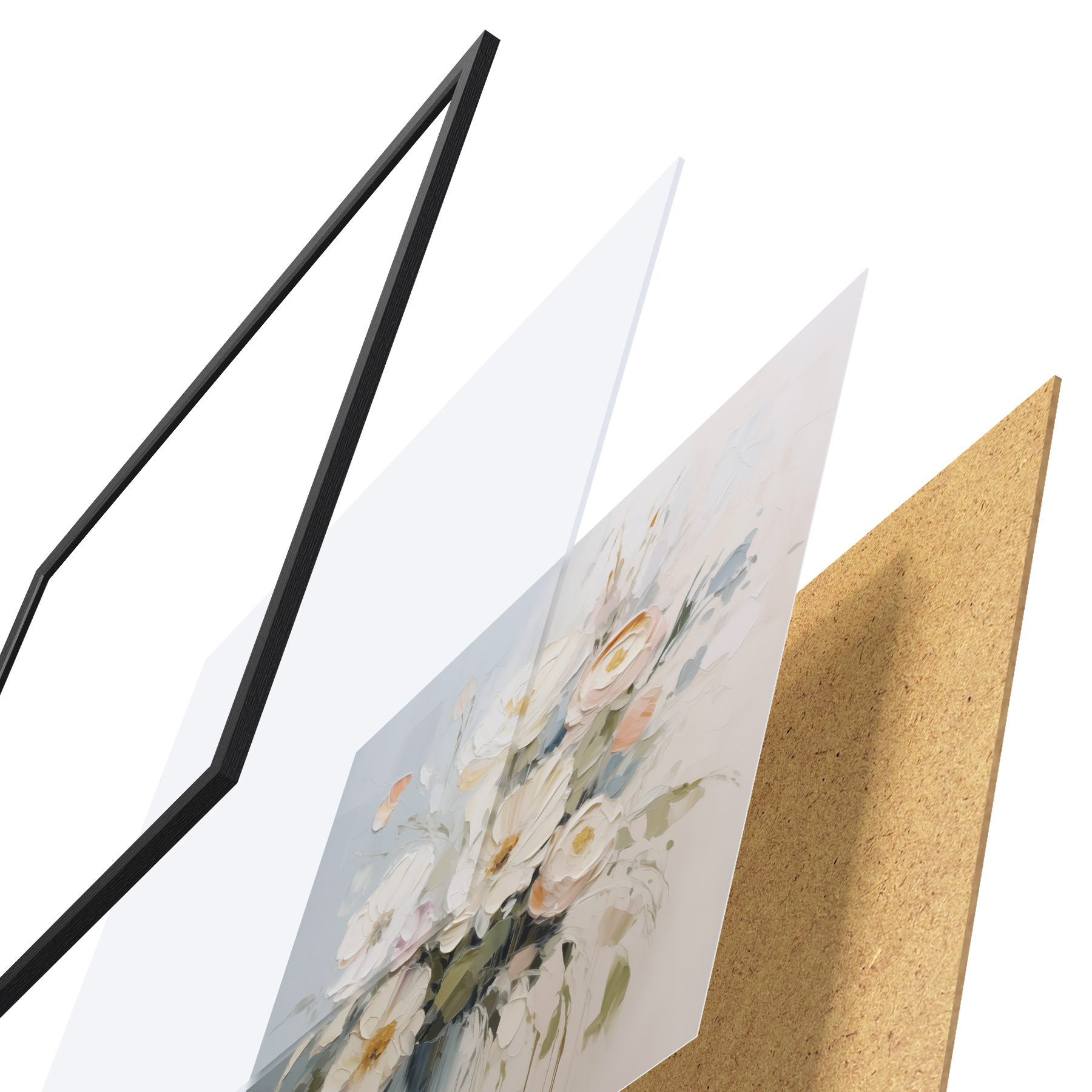Le poster se compose d'un cadre, d'un plexiglas, d'une image imprimée et d'un support en aggloméré. Le poster peut être immédiatement accroché au mur grâce aux fixations au dos.