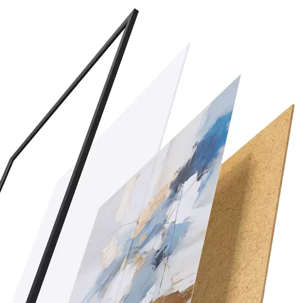 Le poster se compose d'un cadre, d'un plexiglas, d'une image imprimée et d'un support en aggloméré. Le poster peut être immédiatement accroché au mur grâce aux fixations au dos.