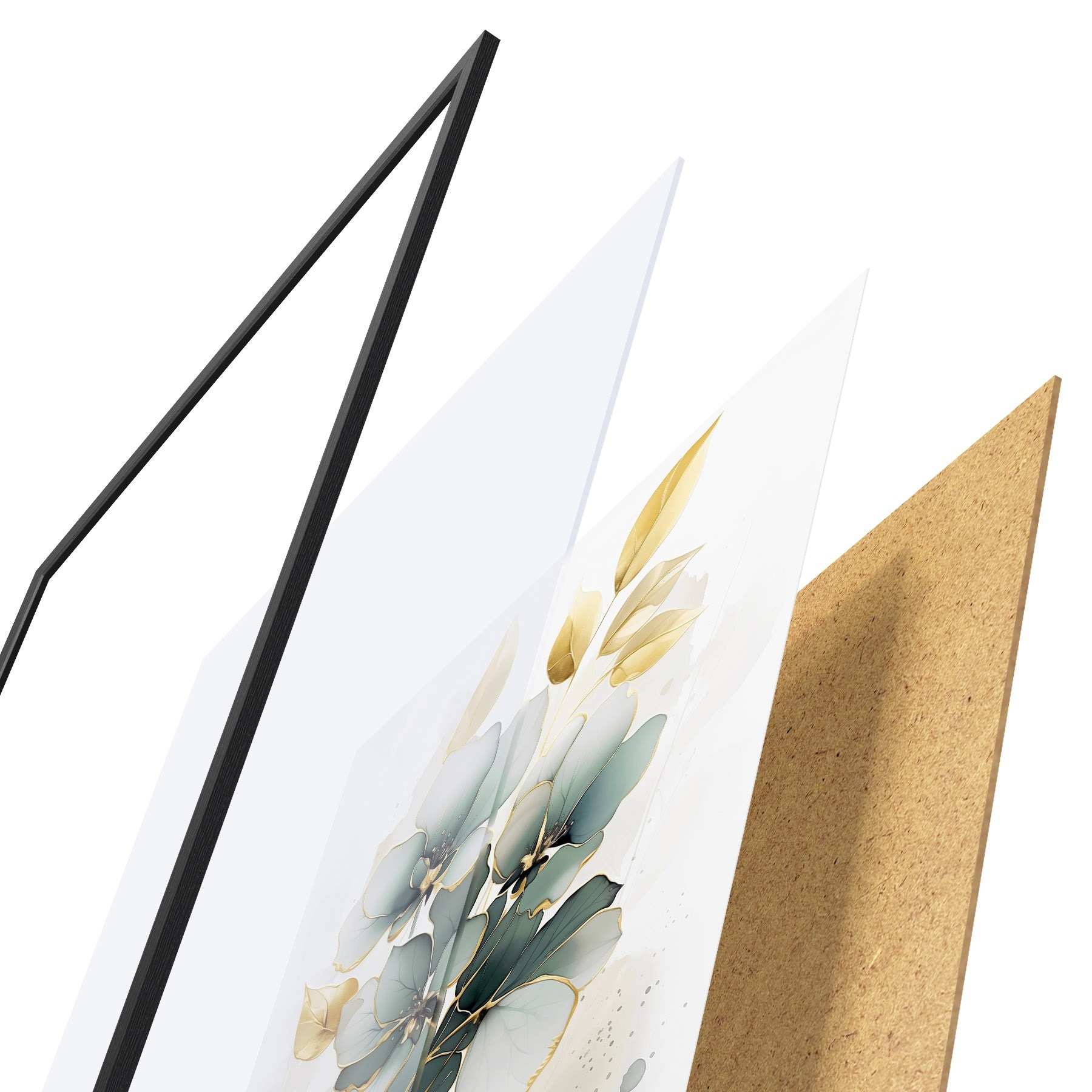 Le poster se compose d'un cadre, d'un plexiglas, d'une image imprimée et d'un support en aggloméré. Le poster peut être immédiatement accroché au mur grâce aux fixations au dos.