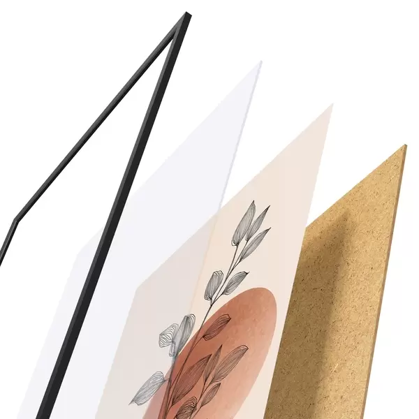 Le poster se compose d'un cadre, d'un plexiglas, d'une image imprimée et d'un support en aggloméré. Le poster peut être immédiatement accroché au mur grâce aux fixations au dos.