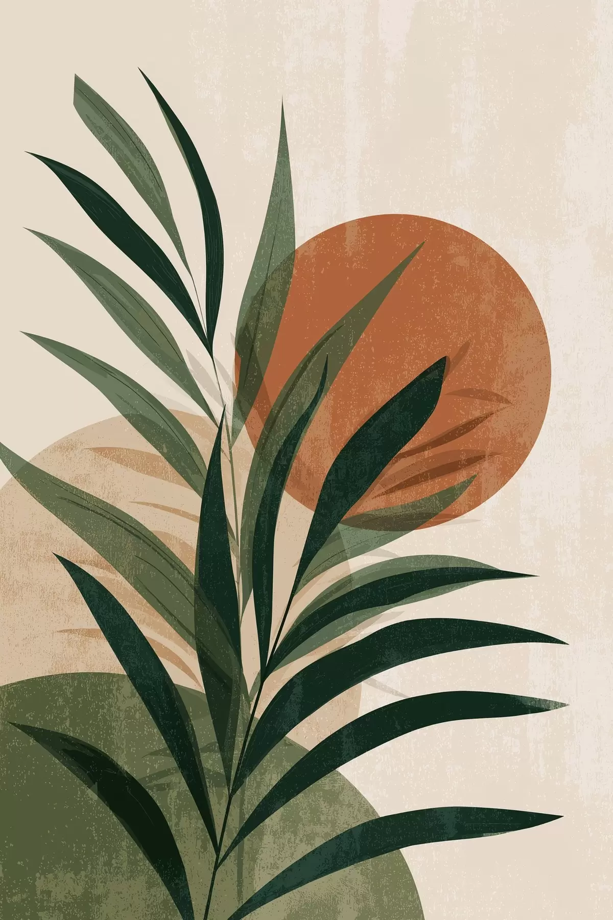 Affiche Feuilles vertes et coucher de soleil Non f45394