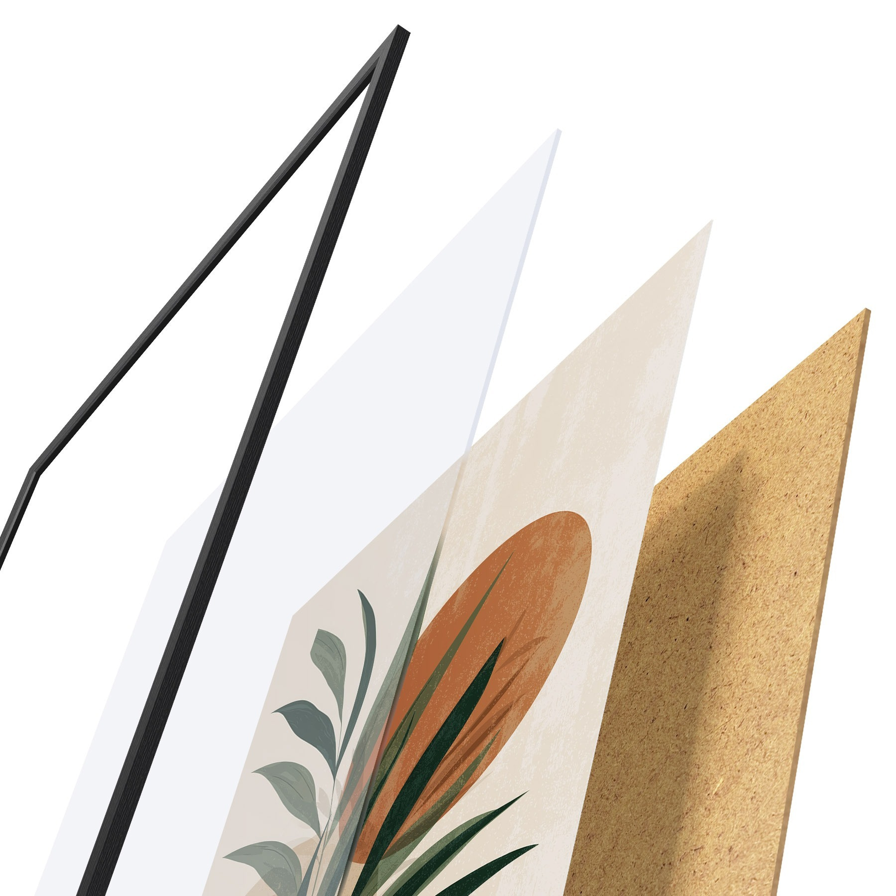 Le poster se compose d'un cadre, d'un plexiglas, d'une image imprimée et d'un support en aggloméré. Le poster peut être immédiatement accroché au mur grâce aux fixations au dos.
