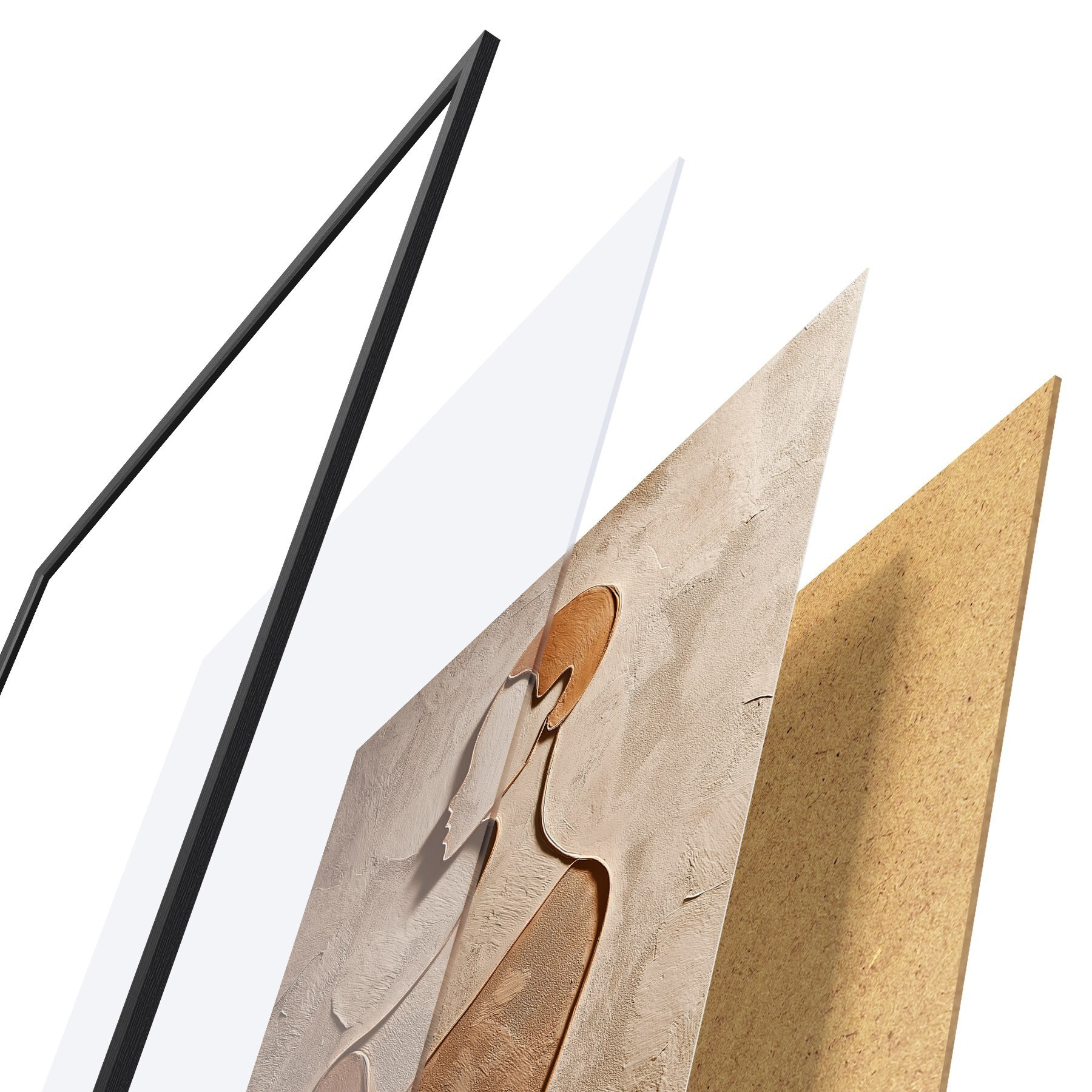Le poster se compose d'un cadre, d'un plexiglas, d'une image imprimée et d'un support en aggloméré. Le poster peut être immédiatement accroché au mur grâce aux fixations au dos.