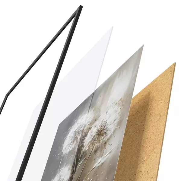 Le poster se compose d'un cadre, d'un plexiglas, d'une image imprimée et d'un support en aggloméré. Le poster peut être immédiatement accroché au mur grâce aux fixations au dos.