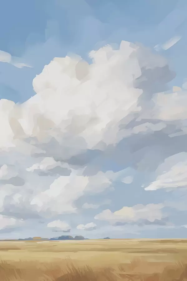 Affiche Champ de blé contre le ciel avec d'énormes nuages Non f45454