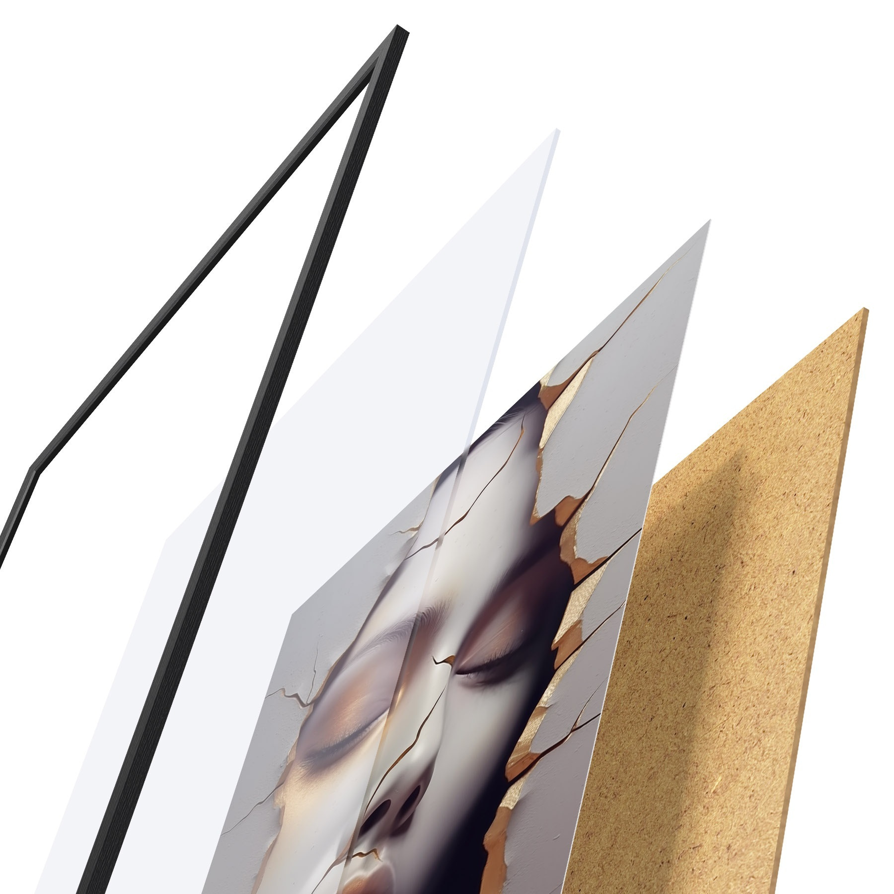 Le poster se compose d'un cadre, d'un plexiglas, d'une image imprimée et d'un support en aggloméré. Le poster peut être immédiatement accroché au mur grâce aux fixations au dos.