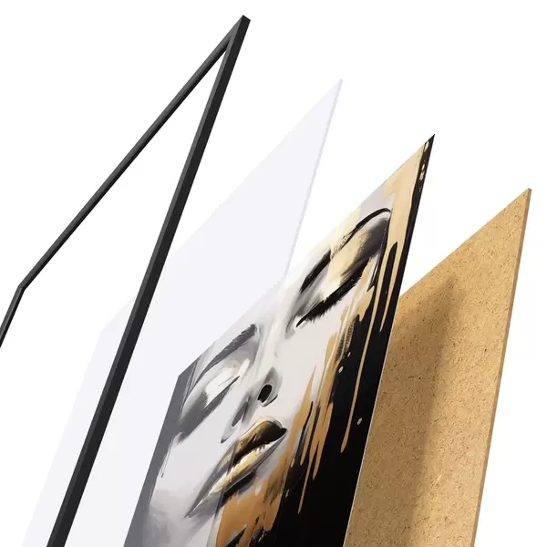 Le poster se compose d'un cadre, d'un plexiglas, d'une image imprimée et d'un support en aggloméré. Le poster peut être immédiatement accroché au mur grâce aux fixations au dos.
