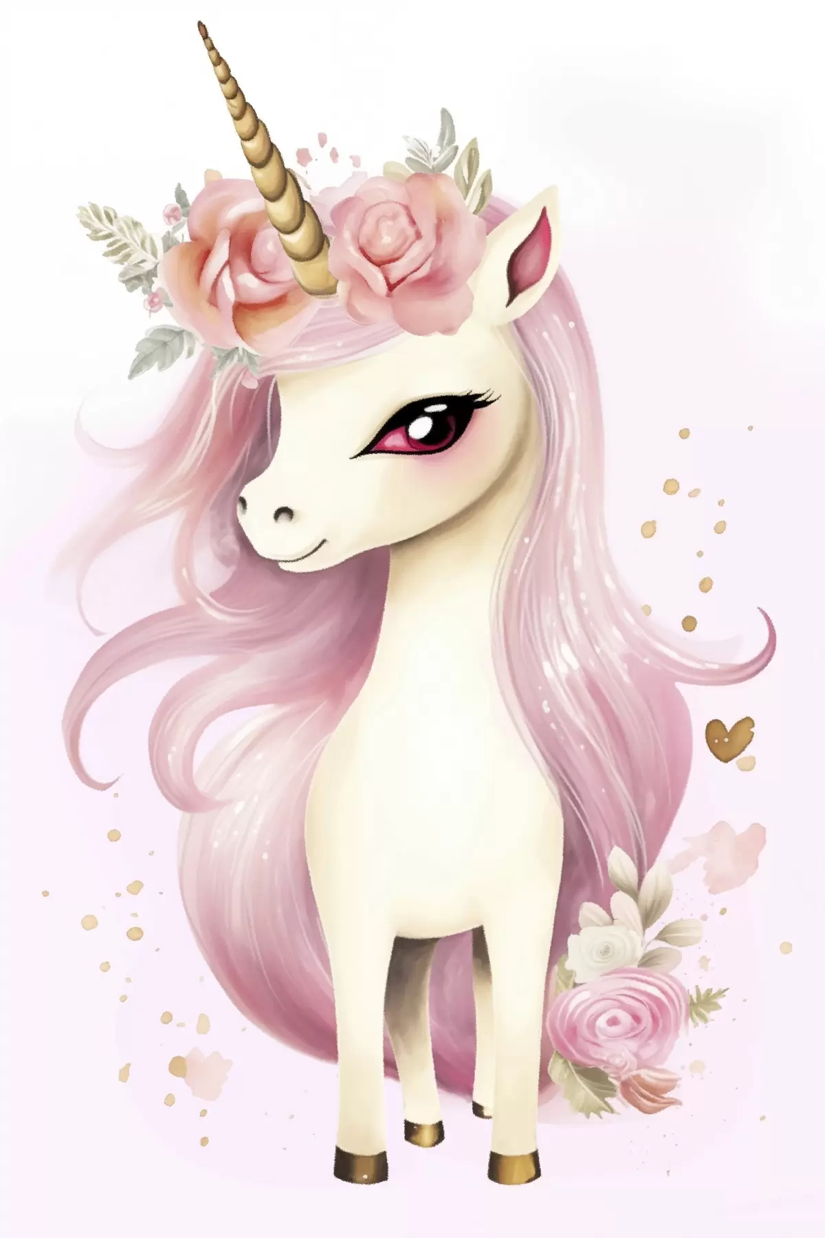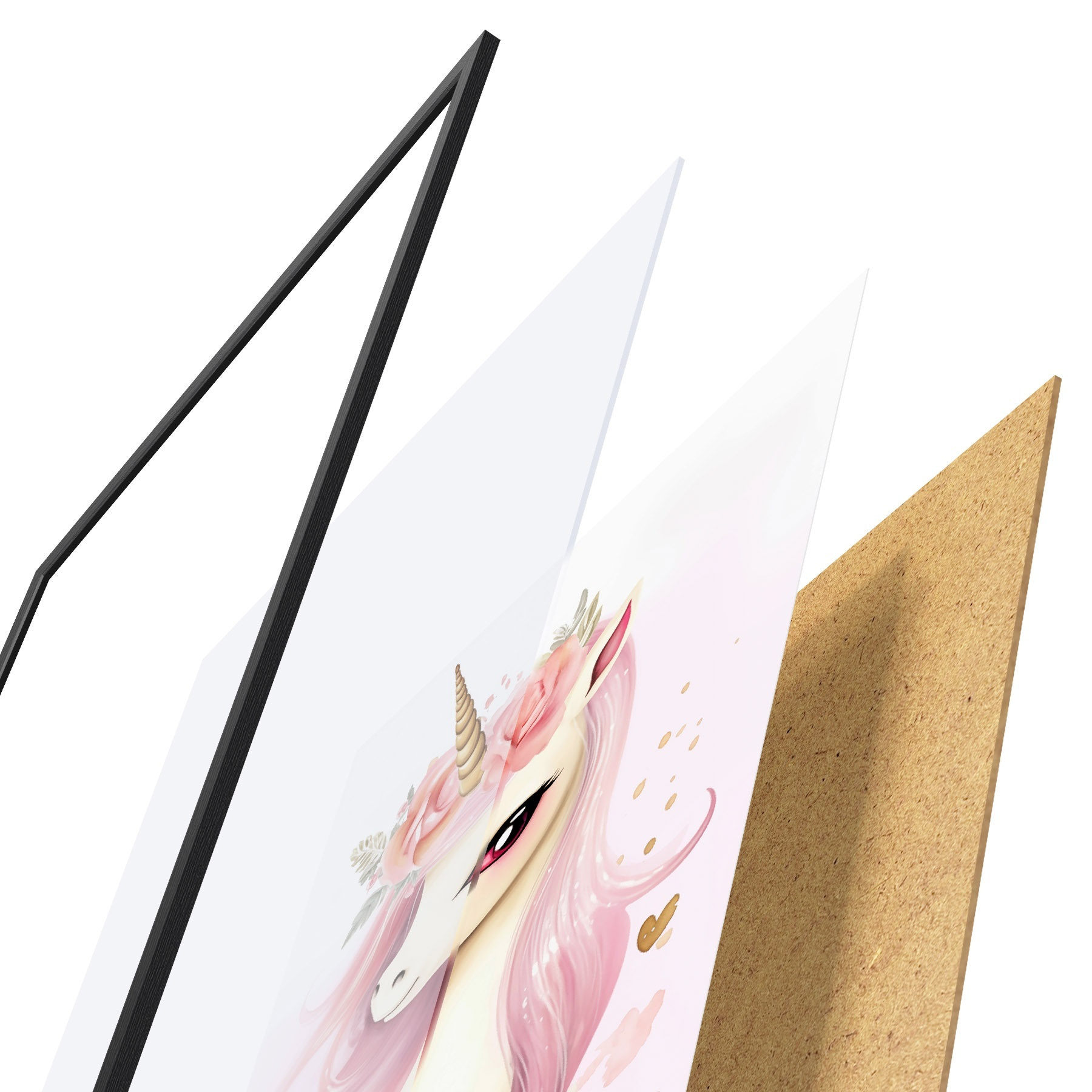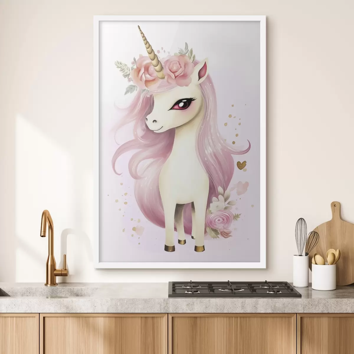 Affiche Licorne avec crinière rose et couronne de fleurs f45484