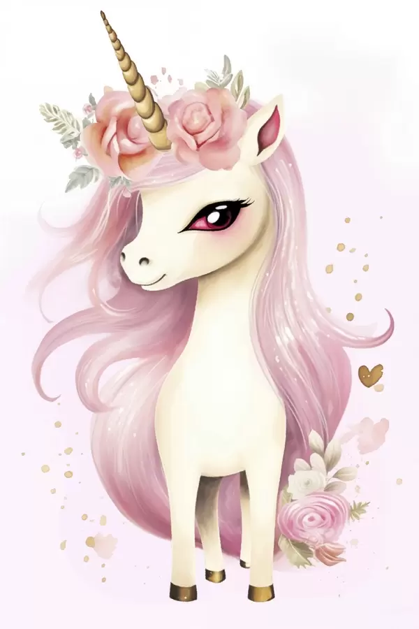 Affiche Licorne avec crinière rose et couronne de fleurs f45484