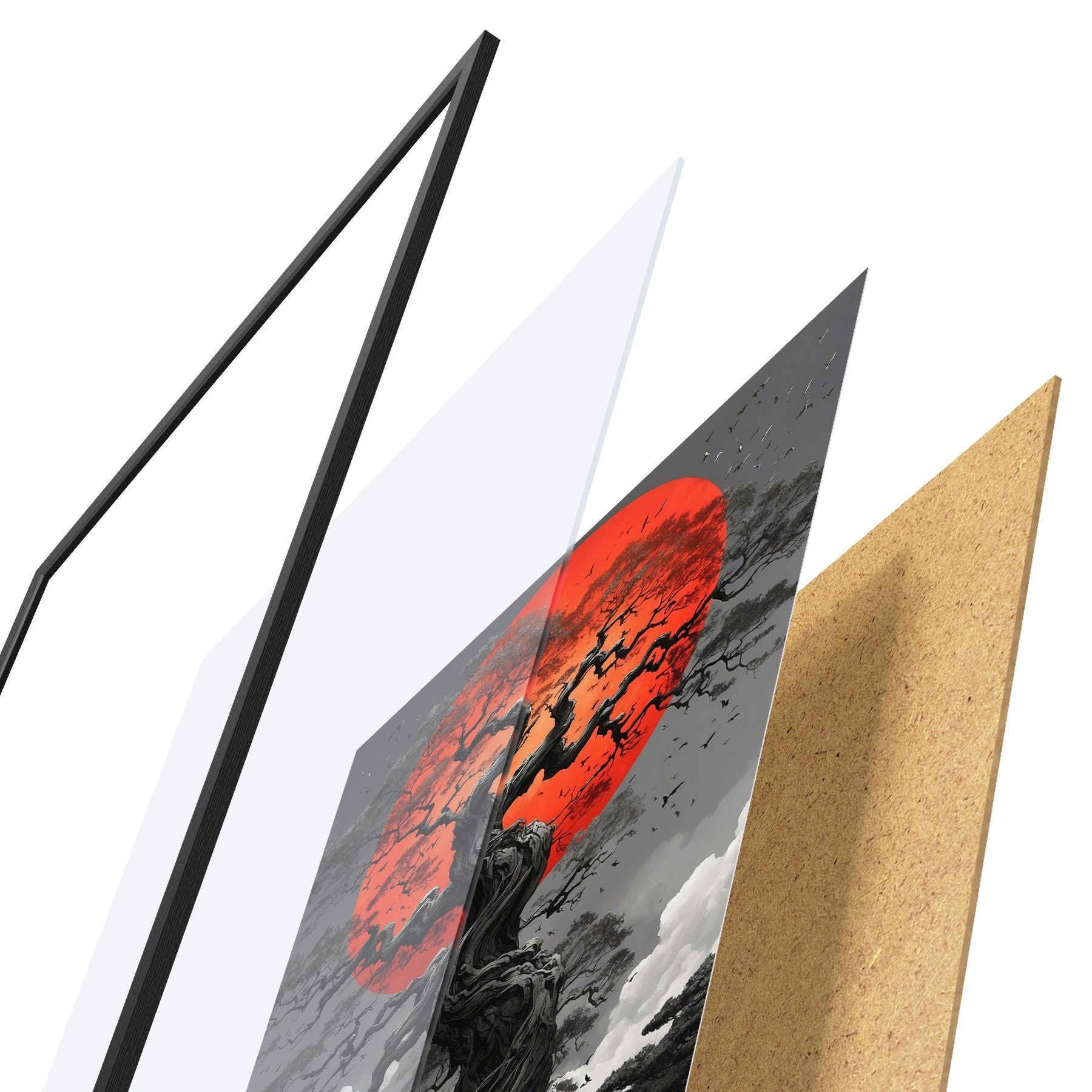 Le poster se compose d'un cadre, d'un plexiglas, d'une image imprimée et d'un support en aggloméré. Le poster peut être immédiatement accroché au mur grâce aux fixations au dos.