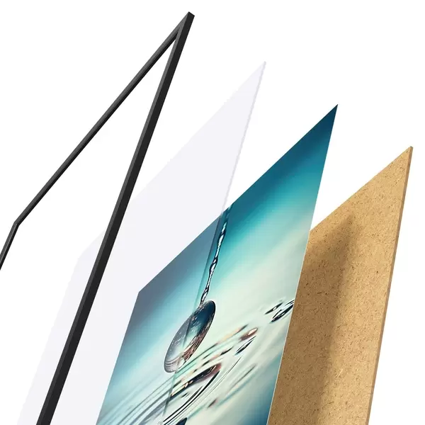 Le poster se compose d'un cadre, d'un plexiglas, d'une image imprimée et d'un support en aggloméré. Le poster peut être immédiatement accroché au mur grâce aux fixations au dos.