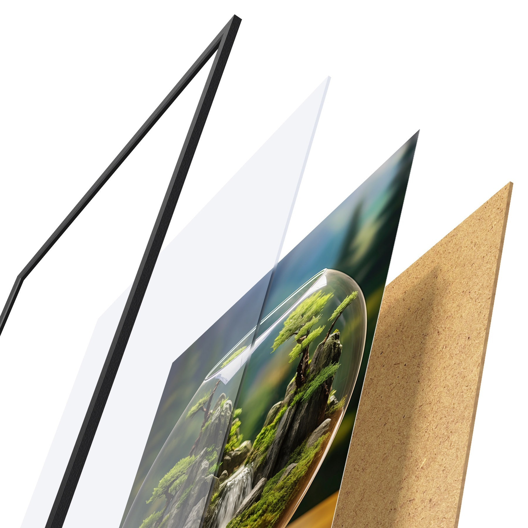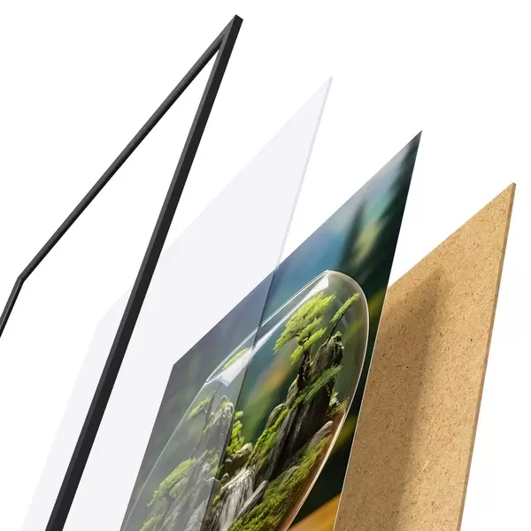 Le poster se compose d'un cadre, d'un plexiglas, d'une image imprimée et d'un support en aggloméré. Le poster peut être immédiatement accroché au mur grâce aux fixations au dos.