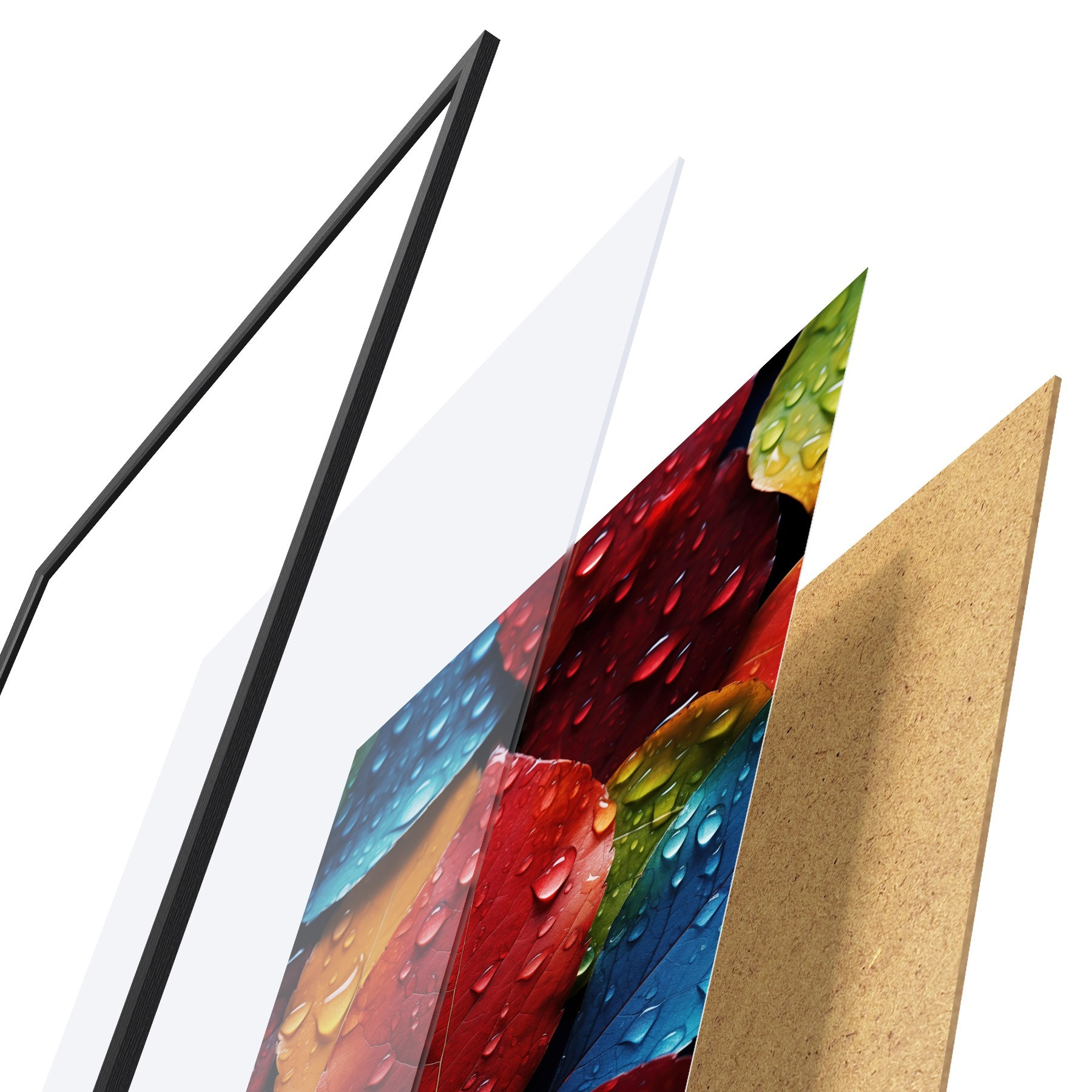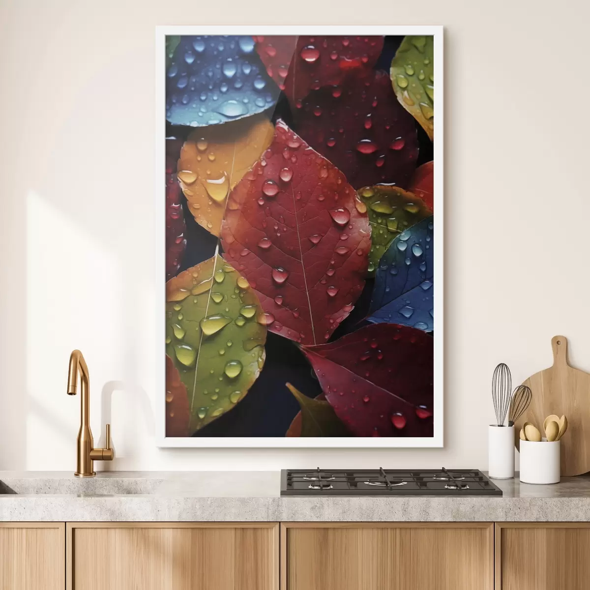 Affiche Feuilles colorées avec des gouttes d'eau Non f45516