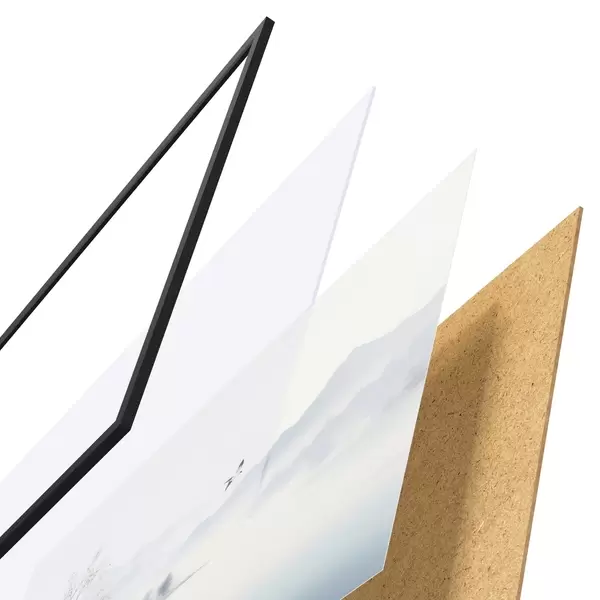 Le poster se compose d'un cadre, d'un plexiglas, d'une image imprimée et d'un support en aggloméré. Le poster peut être immédiatement accroché au mur grâce aux fixations au dos.