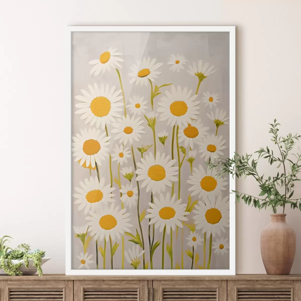Affiche Fleurs sauvages : composition de marguerites sur fond clair f45528
